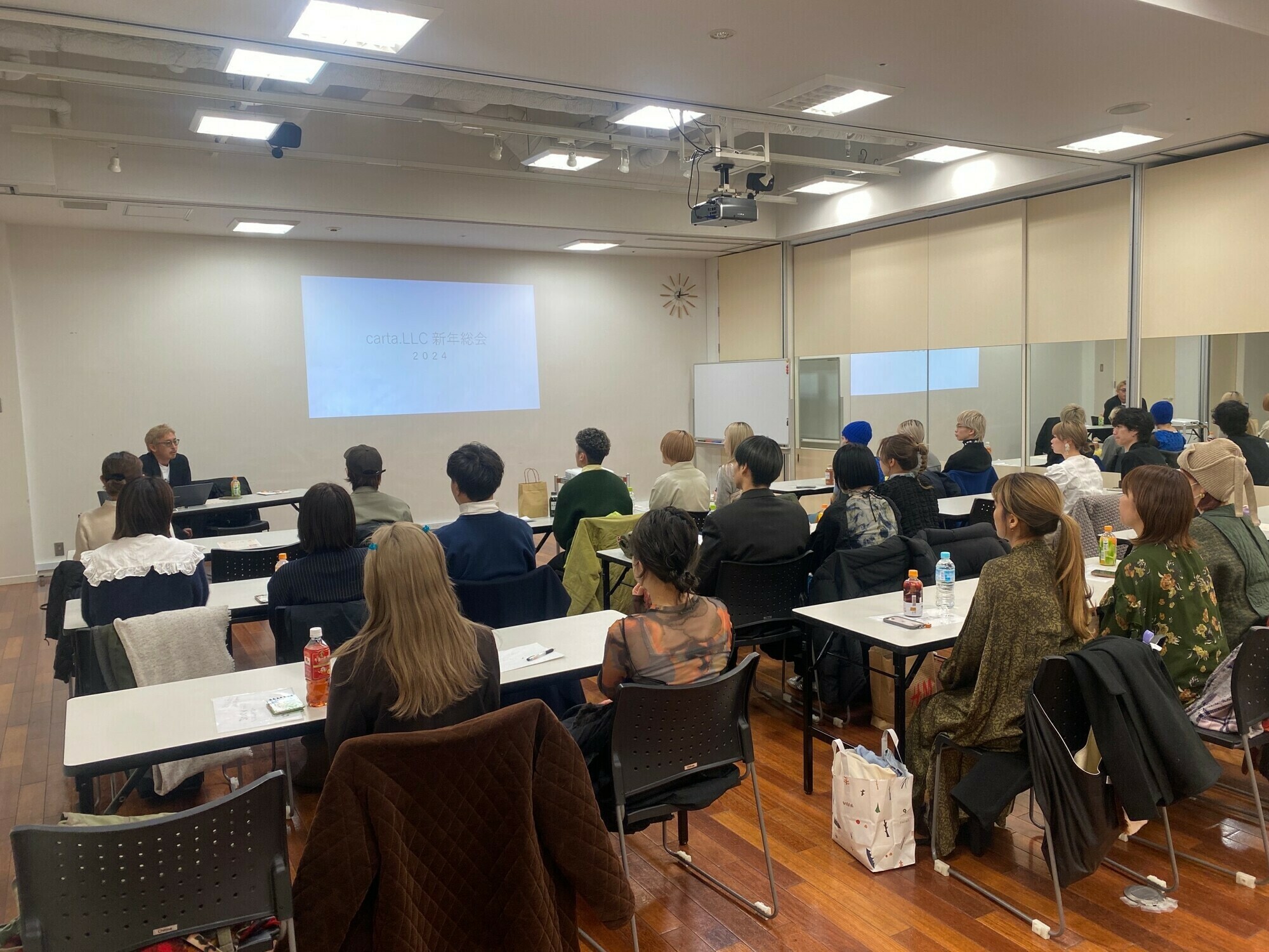 新年総会は毎年年初めに全従業員が年初めの挨拶から始まり、去年のテーマに沿った行動結果に対しての総括をして、その中でも驚くような成長をしたスタッフを表彰し、今年のテーマと各店舗、各スタッフの行動テーマと目標を1人ずつ発表しています。